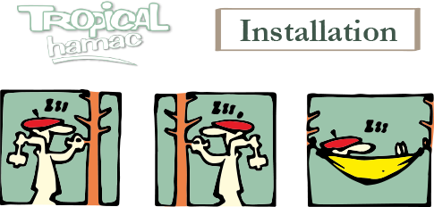 Colgar una hamaca es todo un arte. Puedes perder completamente la comodidad que puede ofrecerte si la instalación no es correcta. La regla de oro es que debe tener una bonita sonrisa (una curva bonita) para tener un descanso suave, poder acostarse sobre la espalda pero también de lado en diagonal, todo ello teniendo un apoyo para la cabeza y un reposabrazos.