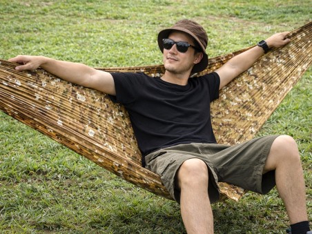 A diferencia de las hamacas militares completas, este modelo adopta un enfoque minimalista. Puede complementarse con una mosquitera independiente así como con una protección contra la lluvia.