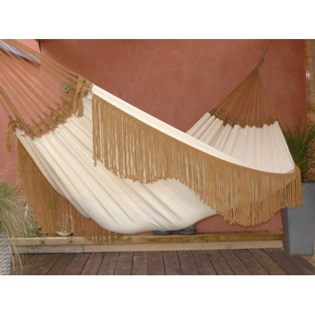 Una hamaca muy especial con flecos innovadores. Salimos de la tradición y mezclamos un producto de mil años de antigüedad con un diseño de flecos muy rock'n'roll. Un toque magnífico para este modelo. En cualquier caso, en Tropical Influences todos nos hemos enamorado de la originalidad.