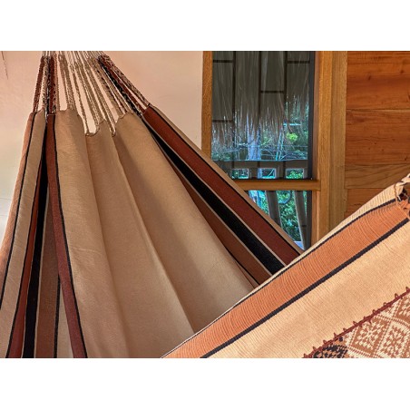 Pura tradición de hamaca hecha a mano del pueblo de San Jacinto en Colombia, que es a la hamaca lo que Saint Emilion es al vino. ¡Trabajamos con los mismos artesanos de este pueblo desde 1995! Hamaca de alta gama que permanecerá en la familia por mucho tiempo... Modelo único, Arena.