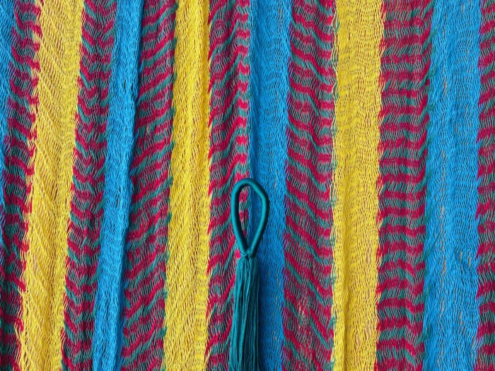 Habiendo pasado una semana aprendiendo a tejer esta hamaca en la isla de Holbox, en el estado de Quintana Roo en México (gracias María por tu paciencia y gracias a tu esposo por los numerosos paseos en barco), soy capaz de repararlas. Si algún día tienes algunos hilos rotos o los brazos de la hamaca demasiado enredados, entonces llámame a la tienda y veremos juntos qué se puede hacer. Pero atención, si 4 hilos seguidos están rotos (es decir, una malla entera), entonces la reparación ya no es posible porque reconstruir una malla entera sin hilo guía requiere al menos medio día de trabajo.