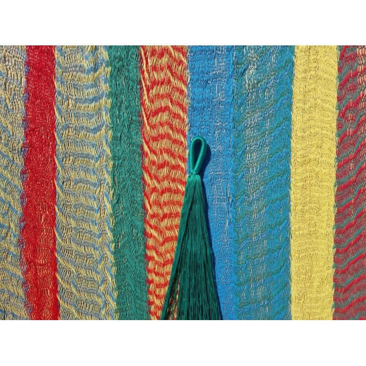 Hamaca mexicano de Yucatán completamente hecho a mano. ¡Frescura y comodidad garantizadas! Siguiendo la tradición mexicana, no imponemos ningún color. Por esta razón, cada modelo es único. Bolsa de almacenamiento incluida (Tote bag). Es muy práctica para que nunca más se enreden los brazos del hamaca. Mira nuestro video en el hamac mexicain.