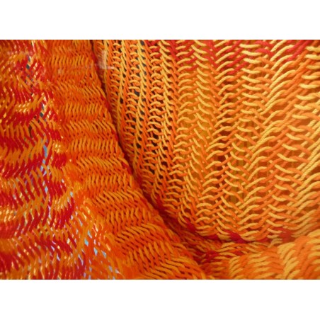 Hecho a mano en las casas de Yucatán, México. Muchas posiciones posibles en esta silla inmensa y extensible. Malla de 4 hilos inventada por los mayas (muy ajustada y extensible) que deja muy pocas marcas en la piel. Diseñada para durar, esta tela ultra resistente conserva su integridad durante muchos años, ¡incluso con uso intensivo por niños! Soporte no incluido.