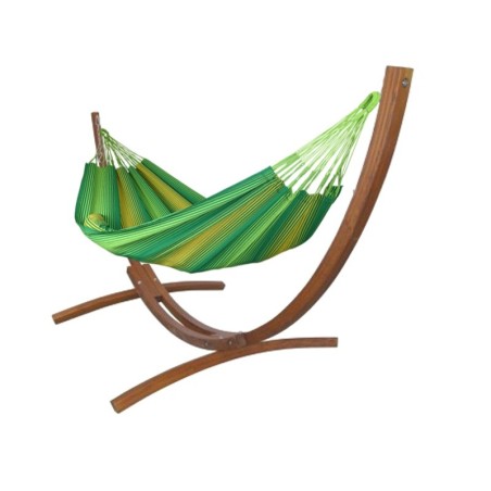 Relájese con el soporte Latino Relax talla L, equipado con la hermosa hamaca L Mariposa Soleil Verde. Diseñado a medida para garantizar una comodidad óptima, este soporte es una exclusividad de Tropical Influences que hará de sus momentos de descanso un verdadero placer. Gracias a su proporción de altura/longitud perfectamente ajustada, este soporte ofrece una curvatura ideal para su hamaca. Esto evita tensiones innecesarias y posiciones incómodas. No se conforme con soportes demasiado bajos y hamacas demasiado tensas, opte por la calidad superior de nuestro modelo. Así podrá relajarse con total tranquilidad.