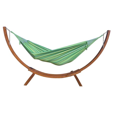 Conjunto compuesto por nuestro modelo de hamaca brasileña Limao. Creación textil por Tropical Influences. La estructura es de madera de alerce laminada en 5 capas, lo que garantiza robustez y durabilidad. Fijaciones incluidas. Todos nuestros artículos están en stock en nuestros propios almacenes y se envían el mismo día o al día siguiente de su pedido.