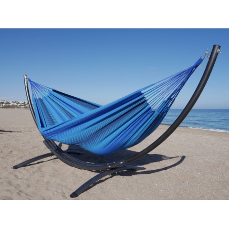 Este soporte acepta sin dificultad el peso de dos adultos y es apto para todas las hamacas de una longitud máxima de 3,75 m (después del uso). Para preservar su longevidad, aconsejamos protegerlo de la lluvia y aplicar ocasionalmente una pintura de retoque adecuada como Hammerite. Un soporte de hamaca único, que solo encontrarás con nosotros. Para el mantenimiento de tu soporte de hamaca, consulta nuestra guía práctica: Soporte de hamaca de metal o madera – Mantenimiento