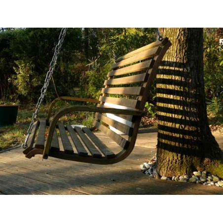 Son bois de mélèze naturellement imputrescible assure une durabilité inégalée et une résistance aux intempéries. Les chaînes d'accrochage fournies avec le banc sont réglables et culminent à une hauteur maximale de 1m85, permettant une installation facile sous un arbre ou des poutres de terrasse. Si nécessaire, vous pouvez également ajouter des accroches supplémentaires en utilisant notre kit corde et crochet ou notre crochet de gymnase.