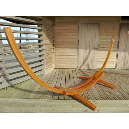 Pour profiter pleinement de votre hamac, nous avons conçu le support en bois Latino Relax XL, fabriqué en Mélèze lamellé-collé. Sa courbe élégante et sa hauteur d’accroche sont spécialement adaptées aux véritables hamacs latino-américains, permettant de s’allonger bien à plat en diagonale, pour un confort optimal.