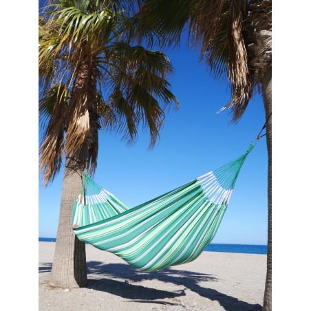 Cocon douillet pour ce hamac vert Caribe Albizia qui illumine et apporte gaieté. D'une robustesse à toutes épreuves. Toile en 140 x 200 en coton recyclé. Fabriqué en Colombie. Le modèle Albizia est une de nos dernières création. Notre dernière collection est inspirée de l'Andalousie. L'Albizia est un arbre très présent là-bas. Ses feuilles vertes sont très fines et ses fleurs aériennes virent du rose au blanc. En Afrique, cet arbre s'appelle le flamboyant.