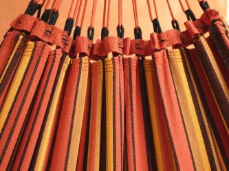 At Tropical Influences, we have been creating our own hammock fabric models for nearly 25 years in numerous factories in Latin America. We have often innovated with color combinations that might have seemed a bit risky. Like the mix of sky blue with burgundy in our "Manalinamoa" model from the 2017 collection. With this "Sertao" model, we innovate once again by combining brown, camel, and red. But this combination, first created on a computer, captivated us all. Bingo! We launched production. The first sample arrived, and we are quite certain that this model will mark our history by remaining No. 1 in the top 50 for many weeks...