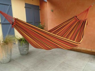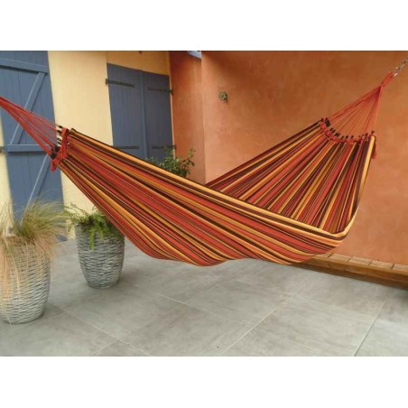 Family model made in Brazil from recycled cotton. Colors are resistant to sunlight as well as machine washing. An XXL-sized hammock for adults but also for those who enjoy using it as a duo! Twilight model, creation Tropical Influences.