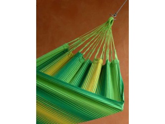 Hammock made in Colombia. This country is the hammock paradise and moreover, Colombians are fond of fine craftsmanship and quality items. In this country, hammocks are sold in art galleries. Beware of Chinese imitations labeled "Colombian hammock"! Two-person model Green Sun.