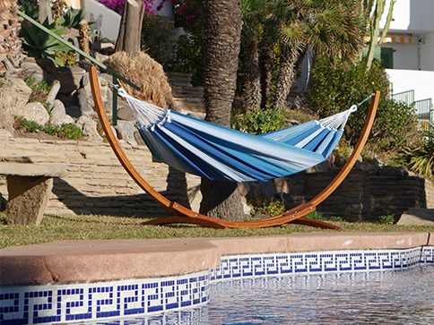 Choose a wooden hammock stand. If you are looking for an aesthetic, natural, durable, and warm finish, with a beautiful integration into a garden, on a terrace, or near a pool.