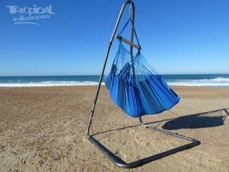 A sturdy set that has proven itself over many years. Due to its design, this hammock chair stand supports a weight of 150 kg! It is height adjustable. The Mariposita Azur XL hammock chair is made in Colombia. Its thread is of superior quality and we are almost the only ones to recommend machine washing at 40° or even 60° if necessary. Our tests have shown that colors start to fade from washing at 90°! Tropical influences is above all an excellent value for money.