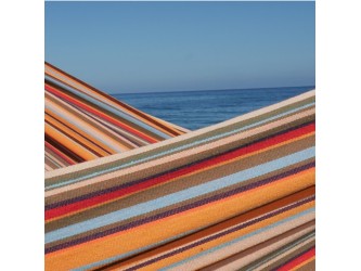 Our Lunatta metal hammock-chair stand, shown here with our Caribena Aguilas model from our Andalusian collection. Fabric made of 70% cotton and 30% polyester, comfortable, good skin contact, coolness, and no static sensation like with synthetic fabrics. Cotton prices are soaring... If you compare our prices, also compare the materials!