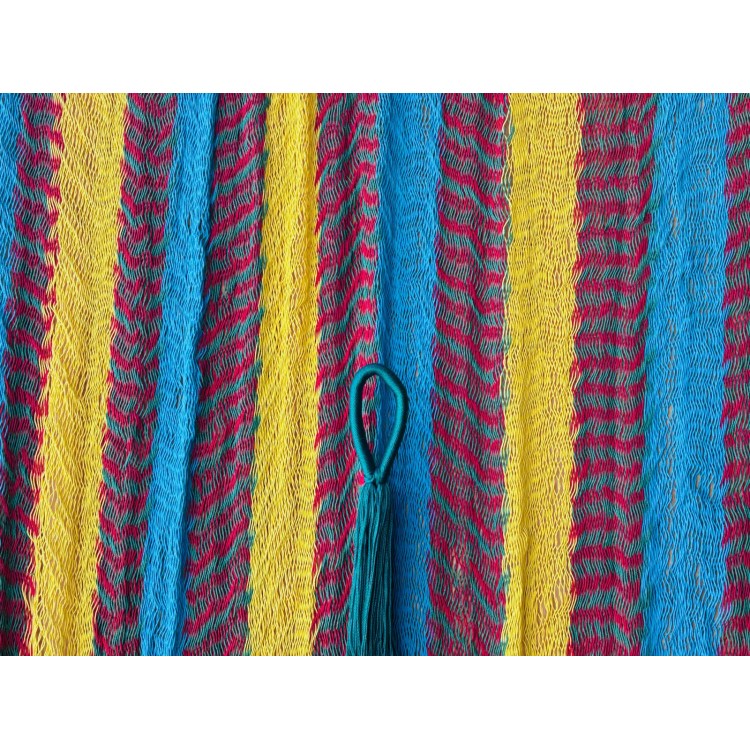 Mexican hammock entirely handmade in the homes of Yucatan. We purchase in Mexico the traditional models and not those "hastily made" for tourist shops. In respect of Mexican tradition, we do not impose any color. For this reason, each model is unique and if a model is sold, we immediately remove it from sales. Storage bag included (Tote bag). It is very practical to never get the hammock arms tangled again.