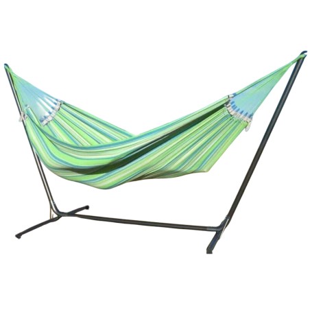 Set supporto e amaca Mojito taglia L. Il nostro supporto Inka Relax è stato appositamente progettato per offrire tutto il comfort delle amache latinoamericane senza barre di legno. Realizzato con tutta la precisione tecnica, come il doppio bullonaggio. L’amaca è prodotta in Brasile con una vera maestria artigianale. Tessuto in cotone riciclato Ecotec. Lavabile in lavatrice fino a 60° se necessario. Questo set è a prova di tutto, infatti ha superato il nostro test con 478 kg! Guarda la foto.