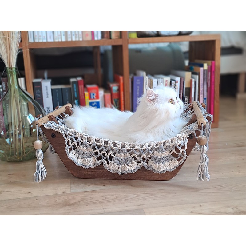 Hamac pour chat écru/gris perlé + support en bois" Nous recommandons le produit Hamac pour chat écru/gris perlé + support en bois sur Tropical Hamac