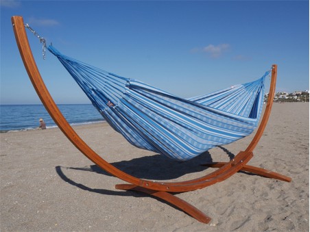 Realizzato in larice lamellare incollato, questo supporto offre una curva naturale perfettamente adatta agli amache latinoamericani. La sua altezza e lunghezza permettono di ottenere una tensione ideale per godere appieno della posizione diagonale.